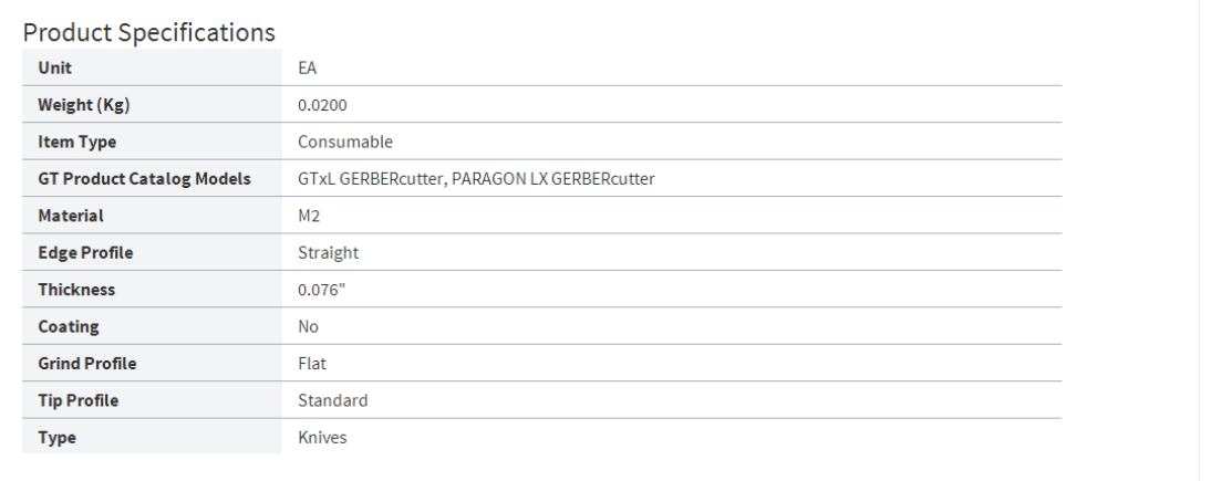 Gerber Technology Tl-353 Single-Ply Tangential Knife Blade Replacement Parts