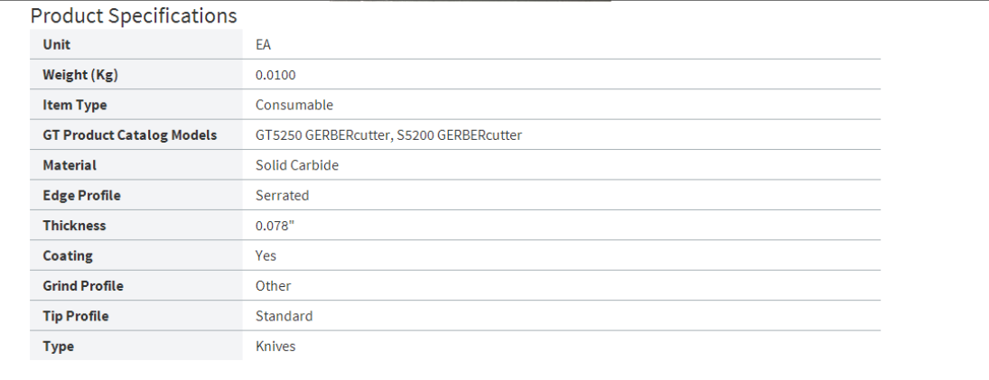 Gerber Technology Tl-353 Single-Ply Tangential Knife Blade Replacement Parts